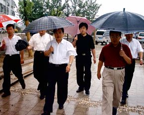 集團公司近年來承建的大型重點工程引起了各級領(lǐng)導(dǎo)及媒體的廣泛關(guān)注,尤其是今年承建的張面河綜合整治工程更是得到了社會各界的高度贊譽,國家、省、市等領(lǐng)導(dǎo)多次到工程現(xiàn)場視察參觀指導(dǎo)工作。 ![]() 2004年8月山東省副省長趙克志視察指導(dǎo)工作 左一為集團公司董事長徐鵬強 左四為集團公司總經(jīng)理朱九洲 |
