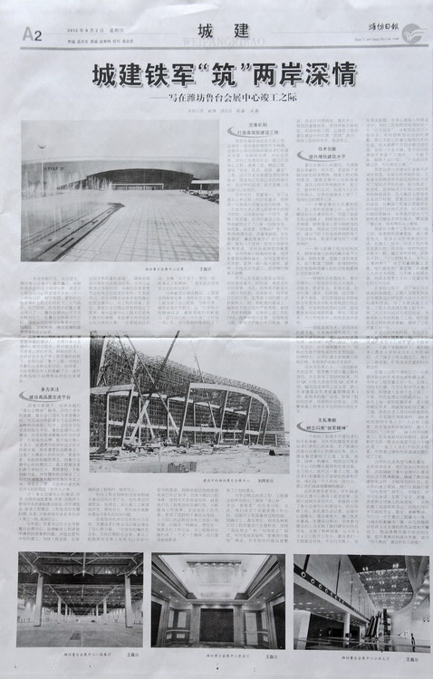 城建鐵軍“筑”兩岸深情——寫(xiě)在濰坊魯臺(tái)會(huì)展中心竣工之際》——濰坊日?qǐng)?bào)2012年8月2日A2版