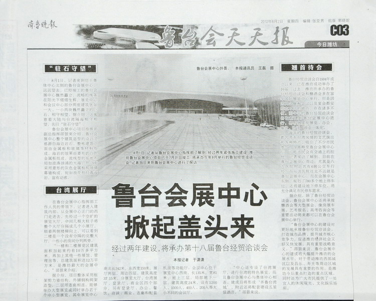 《魯臺會展中心掀起蓋頭來》——齊魯晚報(bào)2012年8月2日C03版