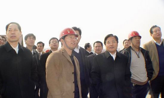上圖右三為張新起書記在體育場南入口二樓平臺,前左一為建設(shè)局局長李廣東,前左二為董事長徐鵬強,前右一為體育局局長耿文,前右二為集團公司孫孔喜。 市委書記張新起再次視察奧體中心體育場工程 3月3日上午,市委書記張新起在市建設(shè)局局長李廣東,規(guī)劃局局長張恒道,體育局局長耿文等同志的陪同下視察了集團公司承建的奧體中心體育場工程。 集團公司董事長徐鵬強,集團公司奧體中心現(xiàn)場總指揮孫孔喜陪同視察。在視察過程中,孫孔喜對施工情況做了簡要的匯報。張書記對施工進度和質(zhì)量及安全施工情況表示滿意,對施工現(xiàn)場的施工細節(jié)提出更高的要求,如入口樓梯的花壇與地面交接處要做防水處理,花崗巖鋪裝的縫隙要均勻一致。對張書記提出的要求孫總立即做了安排落實。(09.03.03) |