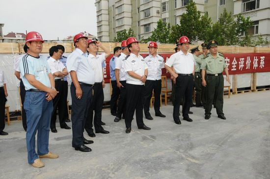 7月30日下午,市委副書記、市長許立全在市政府顧問、公安局長黃濰連和市特警支隊(duì)有關(guān)領(lǐng)導(dǎo)的陪同下,在集團(tuán)公司承建的陽光大廈工地觀摩了高空消防演練。此次消防演練主要是針對(duì)我市的高層建筑逐漸增多的情況,解決高層建筑消防問題,我市耗資380多萬元新購進(jìn)高空消防車,首次亮相參加演練。 集團(tuán)公司副總經(jīng)理、總工程師張連悅陪同觀摩。