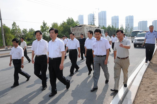 9月4日上午,濰坊市委副書記、市長許立全在副市長劉偉和建設(shè)局局長李廣東等陪同下視察了玄武街改造工程。集團公司董事長徐鵬強陪同許市長一行在現(xiàn)場實地視察并介紹工程有關(guān)情況。 視察中,許市長認(rèn)真聽取工程介紹,仔細(xì)察看瀝青罩面、花壇緣石鑲貼、路面雨污水口與路面交接等細(xì)部工程處理情況,對工程的精細(xì)化管理給予充分肯定和較高評價;在白浪河橋工程現(xiàn)場,許市長實地察看了第六分公司正在進行的降水施工法,對工程進展情況表示了滿意。看到局部地段因拆遷影響人行道工程進展時,許市長要求相關(guān)部門加快工作進度,積極為施工單位創(chuàng)造條件,早日修好這條縱貫東西、五區(qū)連橫、商業(yè)娛樂集聚的交通要道,造福濰坊人民。