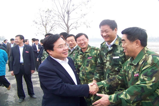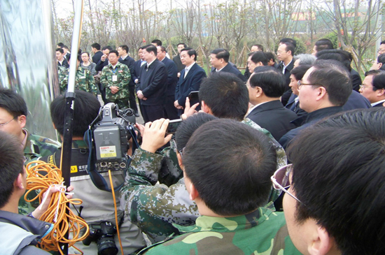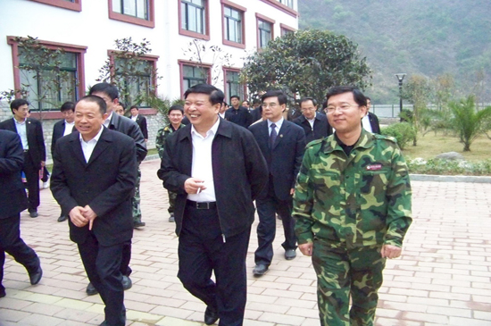 4月10日上午,山東省黨政代表團在省委書記姜異康、省長姜大明率領(lǐng)下,到北川新縣城檢查指導援建工作,山東省十七地市黨政負責人參加檢查。