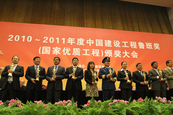 11月7日,由中國建筑業(yè)協(xié)會主辦的2010-2011年度中國建設工程魯班獎(國家優(yōu)質工程)頒獎大會在北京人民大會堂隆重舉行。集團公司董事長徐鵬強以及魯班獎工程——北川人民醫(yī)院承建單位、參建單位代表胡曰俊、于社強參加頒獎大會。參加本次大會的有各省、自治區(qū)、直轄市建筑業(yè)協(xié)會(聯合會、施工行業(yè)協(xié)會),有關行業(yè)建設協(xié)會和其他相關單位的負責人以及獲得魯班獎的承建單位和參建單位代表共計1500余人。