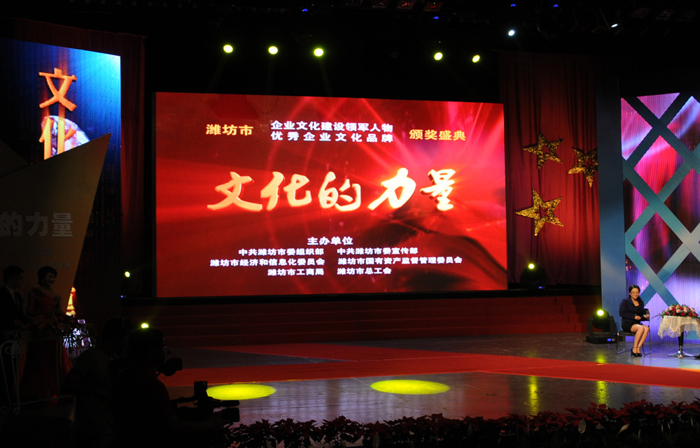 5月18日晚7時30分,由濰坊市委組織部、市委宣傳部、市經(jīng)信委、市國資委、市工商局、市總工會聯(lián)合主辦的“濰坊市企業(yè)文化建設(shè)領(lǐng)軍人物、優(yōu)秀企業(yè)文化品牌頒獎盛典”在濰坊電視臺演播大廳隆重舉行。頒獎活動以《文化的力量》為主題,采用獲獎單位和個人登臺接受頒獎、專家訪談、文藝節(jié)目等形式交替進(jìn)行。集團(tuán)公司“昌大建設(shè)”文化品牌獲濰坊市優(yōu)秀企業(yè)文化品牌;董事長、黨委書記徐鵬強(qiáng)獲濰坊市企業(yè)文化建設(shè)領(lǐng)軍人物稱號。濰坊市委副書記王獻(xiàn)玲,市委常委、宣傳部長初寶杰,市委常委、組織部長陳澤浦,市人大常委會黨組副書記、副主任劉明珂等領(lǐng)導(dǎo)出席頒獎盛典。