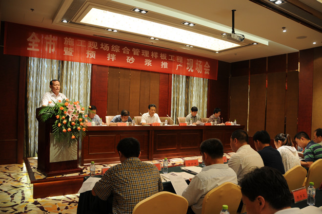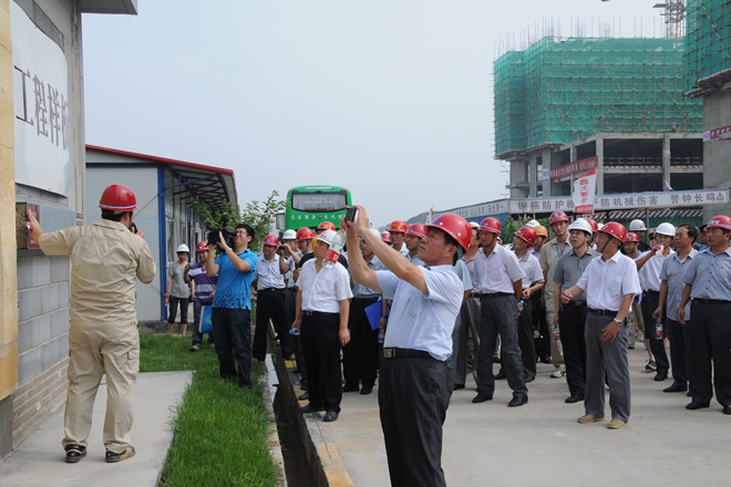 7月25日上午,由濰坊市建筑工程管理處組織的“全市施工現場綜合管理樣板工程暨預攪拌砂漿推廣現場會”在集團公司第四分公司承建的金融廣場舉行。來自濰坊各縣市區(qū)、市屬開發(fā)區(qū)建工處(局)分管主任(局長)、有關科室負責人;全市房屋建筑施工總承包一級企業(yè)和部分二級企業(yè)分管經理,部分預攪拌砂漿生產企業(yè)代表共計120余人參加了現場會。集團公司總工程師張連悅出席現場會并做專題經驗介紹,集團公司質量技術部、生產安全部、資產管理部等有關部門相關人員參加了上午的現場會。