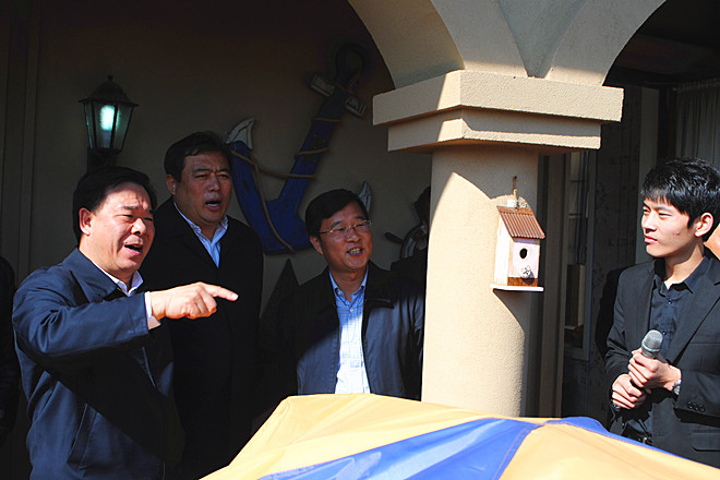 2012年10月18日上午,濰坊市委副書記、市長劉曙光在市政協(xié)副主席、市經(jīng)信委主任李傳恒的陪同下,率領(lǐng)市發(fā)改委、市財(cái)政局、市規(guī)劃局、市旅游局等有關(guān)部門負(fù)責(zé)人到昌樂參觀調(diào)研卡納圣菲項(xiàng)目。昌樂縣委書記、縣人大常委會(huì)主任張新強(qiáng),縣委副書記、縣長高立波陪同調(diào)研。集團(tuán)董事長徐鵬強(qiáng)陪同劉曙光參觀調(diào)研并就項(xiàng)目開發(fā)情況作了匯報(bào)。