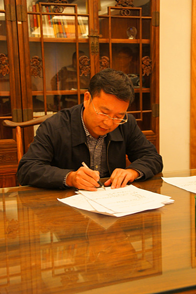 上圖為昌大建設(shè)集團(tuán)董事長徐鵬強(qiáng)在簽署成立文件