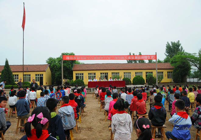 2013年5月29日上午,由裝飾分公司發(fā)起并聯合第四、第八分公司共同實施的員工為留守兒童捐建午餐食堂捐贈儀式在臨朐縣寺頭鎮(zhèn)春蕾小學舉行。三個捐建單位的領導班子成員和員工代表參加了捐贈活動。集團公司對員工自發(fā)組織的這項活動給予了充分肯定和積極支持,監(jiān)事會主席、黨委副書記、紀委書記滕忠斌出席捐贈活動并在儀式上講話。集團公司辦公室副主任、駐臨朐幫扶工作領導小組成員兼臨朐寺頭鎮(zhèn)大崮東村第一書記徐良本,受捐贈春蕾小學的200多名師生參加上述活動。捐贈儀式由臨朐縣寺頭鎮(zhèn)黨委書記瞿志敏主持。