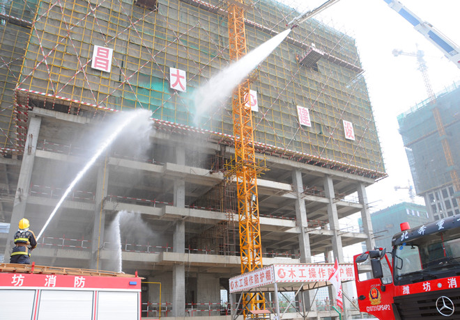 為切實(shí)推進(jìn)施工現(xiàn)場(chǎng)消防安全管理,提高全員消防應(yīng)變能力,以實(shí)際行動(dòng)開展好“六月安全月”活動(dòng),2013年6月5日上午,集團(tuán)公司在高新區(qū)中央商務(wù)區(qū)施工現(xiàn)場(chǎng)組織了大型消防演練活動(dòng)。來(lái)自各基層單位分管生產(chǎn)的經(jīng)理、工程管理人員,施工現(xiàn)場(chǎng)專職安全員,演練現(xiàn)場(chǎng)三個(gè)分公司的全體管理人員和勞務(wù)專業(yè)隊(duì)伍,高新區(qū)工程建設(shè)、總承包、監(jiān)理單位以及勞務(wù)分包單位代表等近1000人參加了演練活動(dòng)。