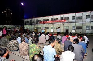 2015年5月21日晚,主題為“中國(guó)夢(mèng)?勞動(dòng)美”濰坊市總工會(huì)職工藝術(shù)團(tuán)慰問(wèn)演出在集團(tuán)中央商務(wù)區(qū)工地現(xiàn)場(chǎng)舉行。演出依托第四分公司實(shí)施,地點(diǎn)選擇了徐志明項(xiàng)目部辦公室室外小廣場(chǎng)。中央商務(wù)區(qū)的第二、第四、安裝、裝飾、第二裝飾、裝飾窗業(yè)分公司的工地員工代表、專(zhuān)業(yè)勞務(wù)工人現(xiàn)場(chǎng)觀看了演出。