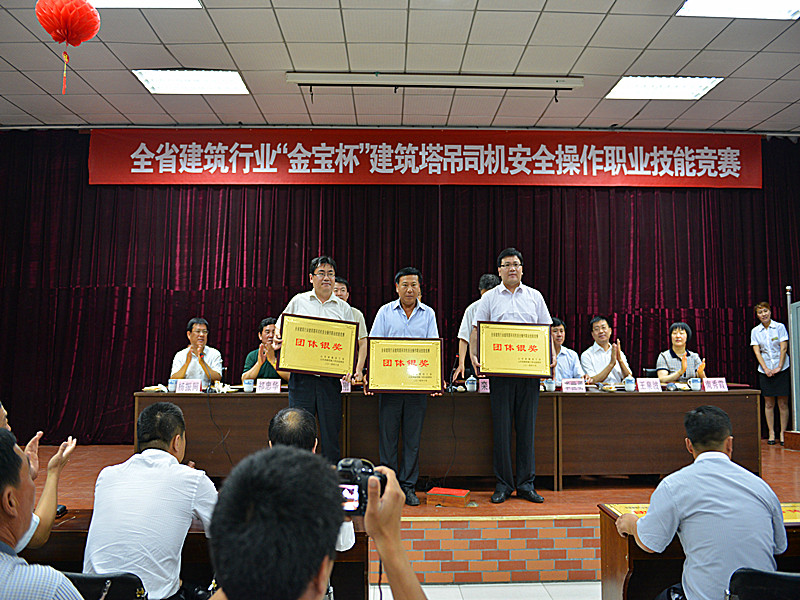 2014年6月19日,由山東省建設(shè)工會(huì)、山東省建筑安全監(jiān)督站、濰坊市建設(shè)局主辦,濰坊市質(zhì)量安全監(jiān)督站、金寶職業(yè)培訓(xùn)學(xué)校協(xié)辦的“山東省建筑行業(yè)‘金寶杯’建筑塔吊司機(jī)安全操作職業(yè)技能競(jìng)賽在濰坊金寶職業(yè)培訓(xùn)學(xué)校圓滿落幕。集團(tuán)組隊(duì)代表濰坊市參加比賽,獲得團(tuán)體銀獎(jiǎng),操機(jī)手王來(lái)春榮獲個(gè)人金獎(jiǎng)。