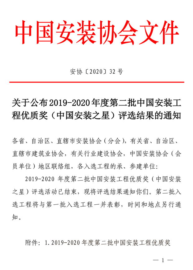 集團(tuán)首次參評并獲“中國安裝之星”