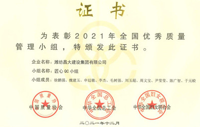 由集團機施公司匠心QC小組編寫的成果《施工升降機新型電纜臂架的研制》,經(jīng)初賽、復賽和決賽,在榮獲特等獎后被推薦至中國質(zhì)量協(xié)會代表建筑行業(yè)作進一步的競賽交流,該匠心QC小組也被中國質(zhì)量協(xié)會、中華全國總工會、中華全國婦女聯(lián)合會評選為2021年全國優(yōu)秀質(zhì)量管理小組,代表了建筑行業(yè)質(zhì)量管理小組活動的最高水平。