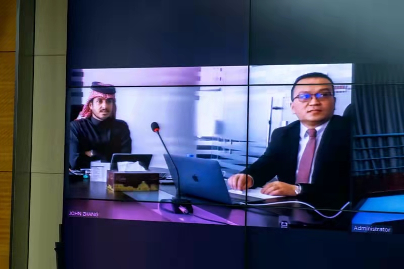 董事長(zhǎng)徐鵬強(qiáng)、總裁朱九洲等集團(tuán)領(lǐng)導(dǎo)與卡塔爾扎伯王爺舉行視頻會(huì)議