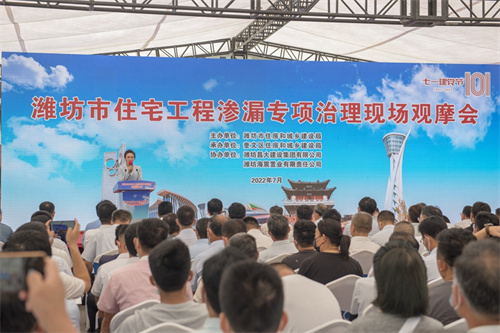 2022年7月1日上午,由濰坊市住建局組織的“濰坊市住宅工程滲漏專項治理”觀摩會在集團二建公司總承包施工的海通恒信·鳶都名筑項目現(xiàn)場舉行。