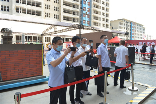 集團總工程師房海、質(zhì)量技術(shù)部總經(jīng)理劉文、二建公司總經(jīng)理李建成參加觀摩活動。各縣市區(qū)住建局分管局長、建筑業(yè)發(fā)展中心主任、施工企業(yè)代表等200余人參加了上午的觀摩活動。