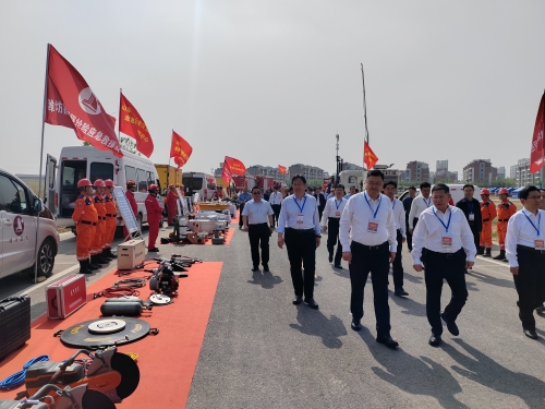 2024年4月17日至18日,山東省地震綜合應(yīng)急演練在東營(yíng)市舉行。副省長(zhǎng)周立偉,省政府副秘書長(zhǎng)張成偉,省應(yīng)急廳黨委書記、廳長(zhǎng)江山出席活動(dòng)。濰坊昌大工程搶險(xiǎn)應(yīng)急救援隊(duì)作為山東省省級(jí)應(yīng)急救援隊(duì)受邀參與現(xiàn)場(chǎng)綜合演練,救援隊(duì)20名隊(duì)員參與演練,出動(dòng)大型汽車吊、智能照明設(shè)備、液壓破拆裝備等多臺(tái)裝備進(jìn)行救援展示并順利完成48小時(shí)戶外自我保障,圓滿完成演練任務(wù)。通過(guò)深度參與演練,與各專業(yè)應(yīng)急隊(duì)伍的交流學(xué)習(xí),濰坊昌大工程搶險(xiǎn)應(yīng)急救援隊(duì)持續(xù)完善應(yīng)急救援保障能力,進(jìn)一步提升應(yīng)急救援專業(yè)水平。演練期間,濰坊市應(yīng)急局黨委書記、局長(zhǎng)王法順觀摩救援隊(duì)現(xiàn)場(chǎng)展區(qū)并慰問(wèn)參訓(xùn)隊(duì)員。