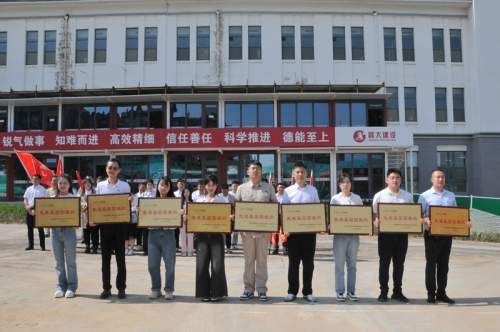 下午,在集團(tuán)二建公司總承包施工的位于青州的濰坊工程職業(yè)學(xué)院新建學(xué)生公寓樓項(xiàng)目現(xiàn)場,舉行了全國、山東省、濰坊市三級(jí)青年文明號(hào)授旗儀式暨2023年度先進(jìn)基層團(tuán)組織頒獎(jiǎng)儀式。兩支全國“青年文明號(hào)”、四支山東省“青年文明號(hào)”、兩支濰坊市“青年文明號(hào)”紅旗列列,彰顯光榮的歷史和突擊的力量;九個(gè)先進(jìn)基層團(tuán)組織獎(jiǎng)牌生輝,昭示青春的燦爛和奮斗!