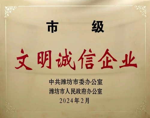 來自濰坊市精神文明建設(shè)委員會消息,集團公司榮獲2023年度“濰坊市文明誠信企業(yè)”榮譽。同時順利通過集團公司市級文明單位年度(2023年度)復(fù)查。