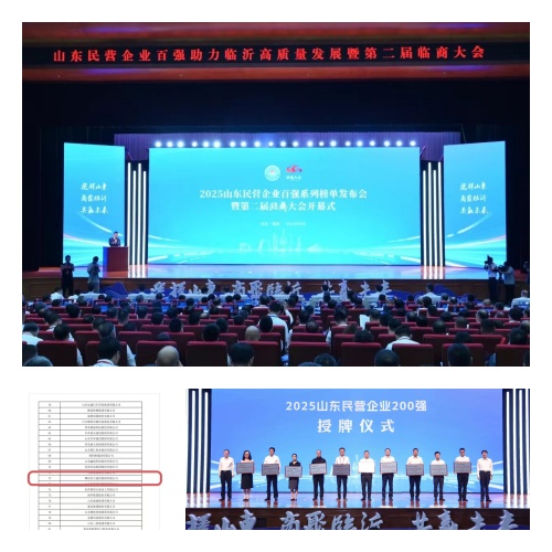 2025年8月19日,2025山東民營企業(yè)百強系列榜單發(fā)布會暨第二屆臨商大會開幕式在臨沂市舉行。集團公司副總裁劉雁冰參會并代表集團領(lǐng)獎。省人大常委會副主任,省工商聯(lián)主席、省總商會會長王隨蓮,臨沂市委書記張寶亮分別致辭,省委統(tǒng)戰(zhàn)部副部長、省工商聯(lián)黨組書記張鯤等與會領(lǐng)導為上榜企業(yè)代表頒牌,省工商聯(lián)黨組成員、副主席陸怡發(fā)布系列榜單,省工商聯(lián)副主席郭建禮發(fā)布分析報告。